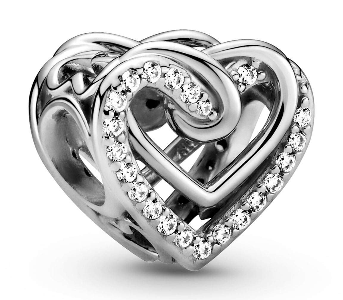 Pandora Sparkling Entwined Hearts 799270C01 is made of sterling silver. The silver-colored charm is decorated with clear synthetic zirconia. The size of the charm is 11 x 11.6 x 8.9 mm. The charm is part of the Pandora Moments series, which means it can be combined with a Pandora Moments bracelet. The Pandora jewellery comes in the original manufacturer's box.