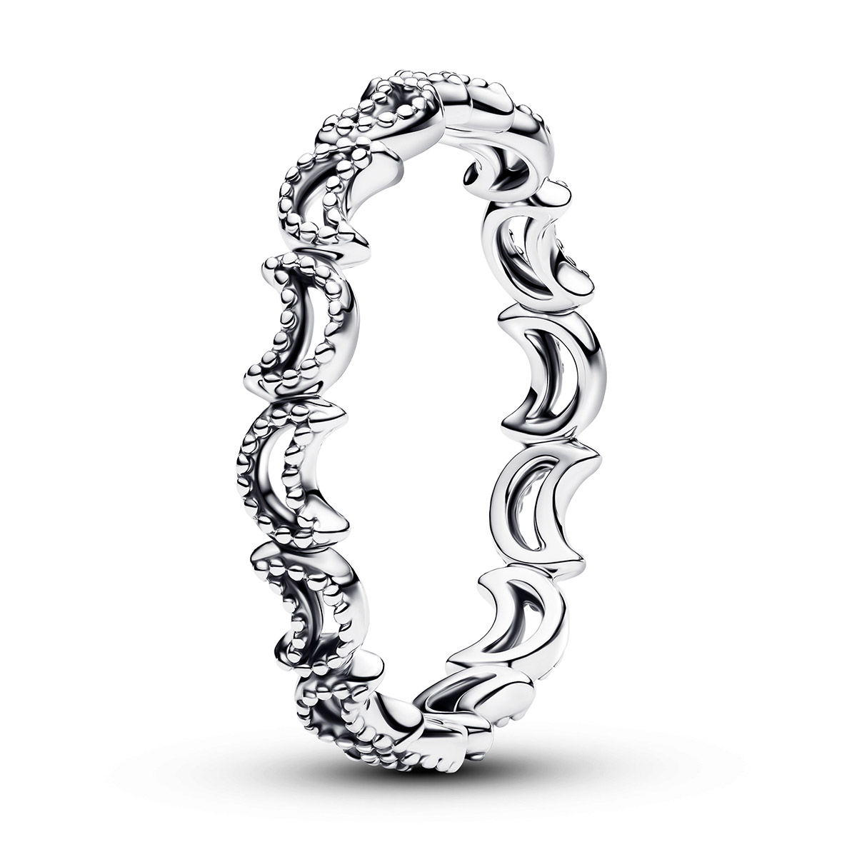Shine like the night sky with the Pandora Moments ring. Crafted from genuine sterling silver, this elegant ring features a crescent moon motif that is embellished with tiny pearl-like details. The design is inspired by the phases of the moon – symbolizing change, growth and feminine power.
