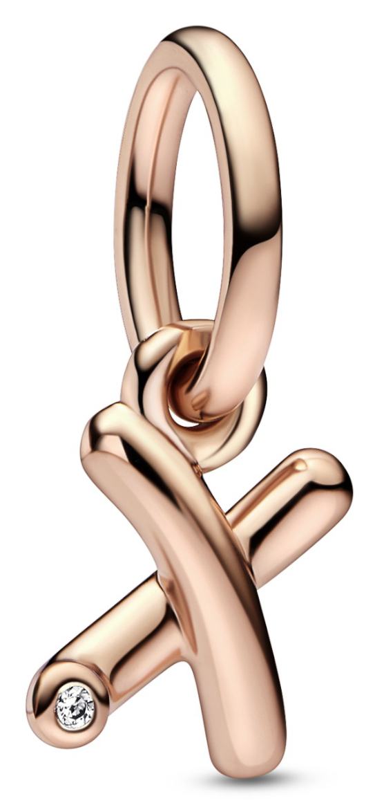 Pandora Moments Letter x Script Alphabet initial jewelry 782482C01 lets you carry with you the letters of the people and things that matter most to you. The bracelet is easy to combine with your favorite Pandora bracelet or chain. Bracelet/chain sold separately.