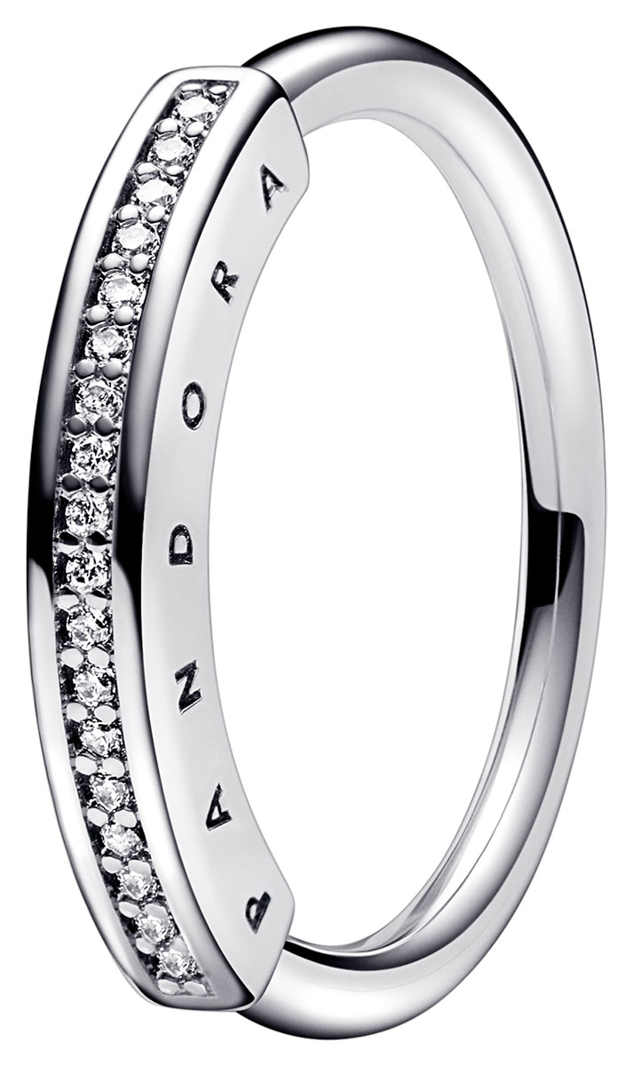 Pandora Signature I-D Pave 192283C01 is a beautiful sterling silver ring. The ring is set with a row of numerous cubic zirconia. This Pandora ring can be combined with any other ring to create a stunning ensemble. Pandora jewellery is delivered in the original jewellery box from the manufacturer.