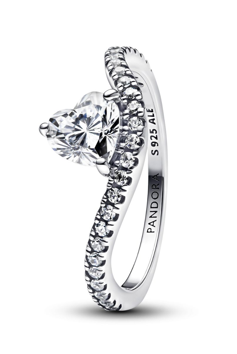 Pandora Wish and Wave Paveè wave ring 163660C01 has a curved shank and a heart in the centre. The look is finished with smaller brilliant zirconia. The heart ring is in sterling silver. You can choose the size that suits you from the drop-down menu. Pandora jewelry is delivered in the manufacturer's original box.