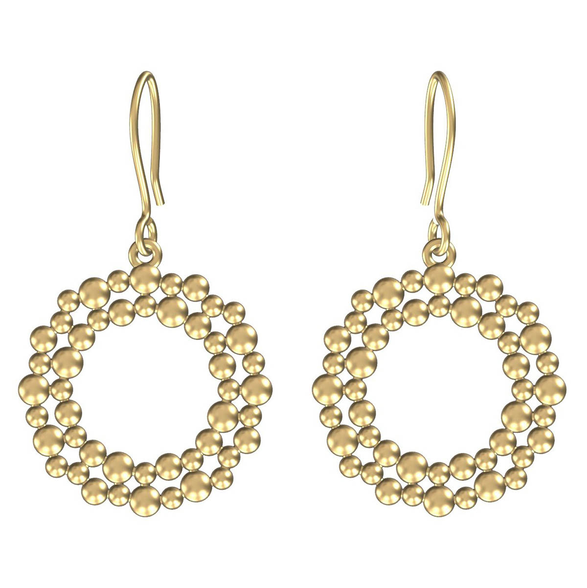 Ritva-Liisa Pohjalainen Ystävät 54 241 00 000 round earrings have two rings made of small balls next to each other, which create an elegant whole. The earrings are made of gold-plated 925 silver and have a hook fastening. The diameter of the earrings is 26 mm. Also available in silver. Designer Ritva-Liisa Pohjalainen / Manufacturer Saurum Oy.