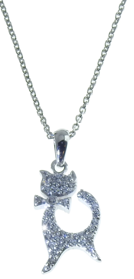 Rodinated Silver Cat pendant 45cm with chain G2-R/ANK040/45