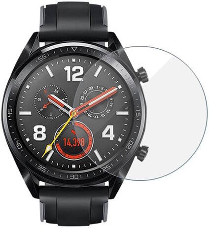 ‌‌Easy-to-install Huawei Watch GT screen protector for protecting your Huawei Watch GT watch face. Thickness 0.3 mm, diameter 35,5 mm. Screen protector covers the watch face and does not affect the touch sensitivity of the touch screen. Package includes a Huawei Watch GT Screen protector, two wet/dry wipes, and a userguide.