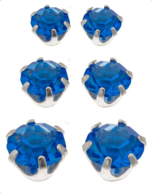 When you have multiple piercings in your ear, finding matching earrings is often difficult. This Silver Bar gift box 7125 contains three synthetic zirconia earrings of different sizes, 3+4+5 mm wide. The blue synthetic zirconias have a round cut and the back of the earrings have a pin stud. Silver Bar jewellery is made of silver. Silver Bar jewellery is supplied in the original manufacturer's packaging.