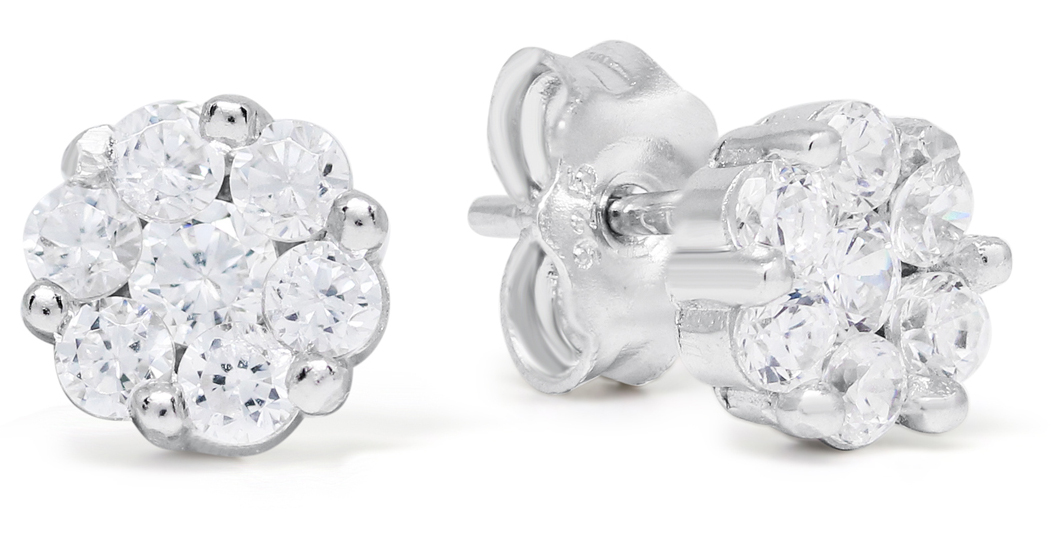 The silver zircon E-0595Z sterling stud earrings feature several small brilliant-cut synthetic zirconia, which make this jewellery glow despite its small size. The jewellery measures 6.3 mm in diameter and has a pin clasp on the back. The E-0595Z earrings are supplied in the original manufacturer's packaging.