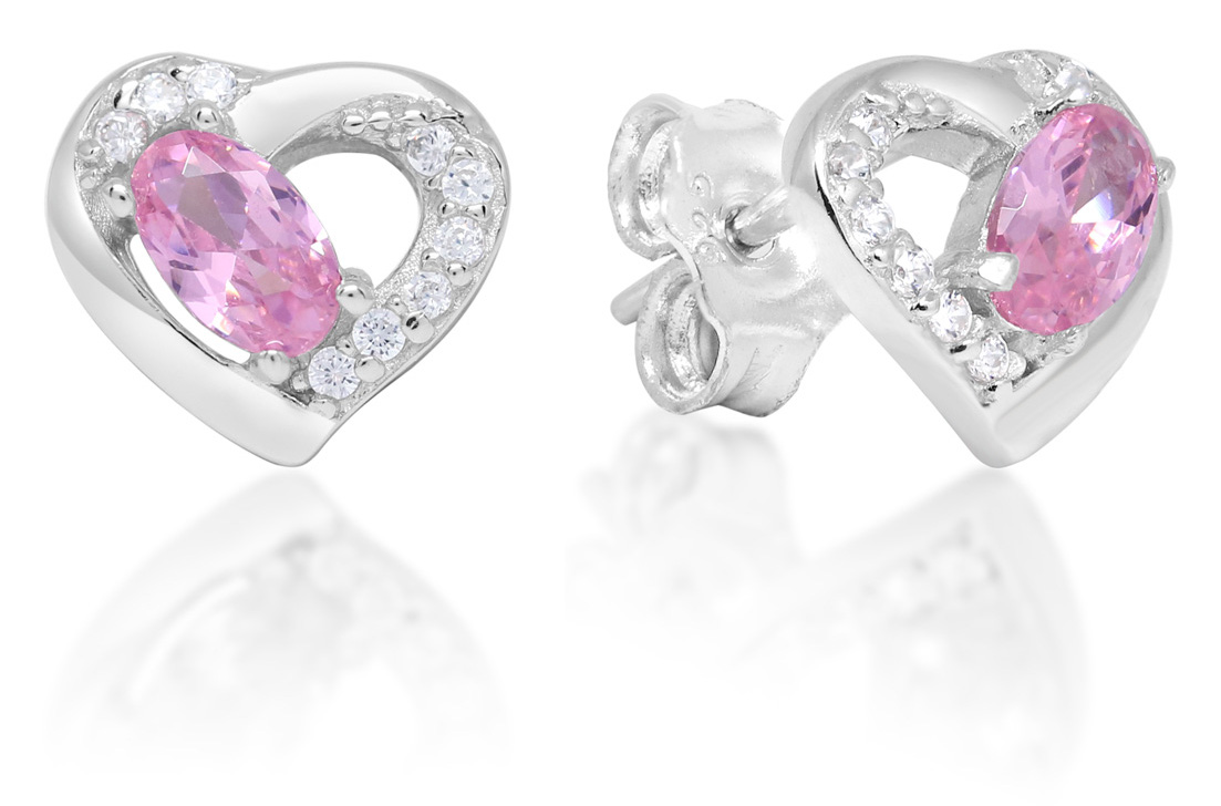 The heart synthetic zirconia E-1551Zpink earrings feature a message of love and a striking stone setting, perfect for both everyday and special occasions. The body of the piece sparkles with several small brilliant cut zircons, while the center is adorned with a larger classic pink oval stone. Give as a gift to a friend on Valentine's Day, a loved one or wear to a wedding reception. The earrings have a diameter of 7.8 mm and come in the original manufacturer's packaging.