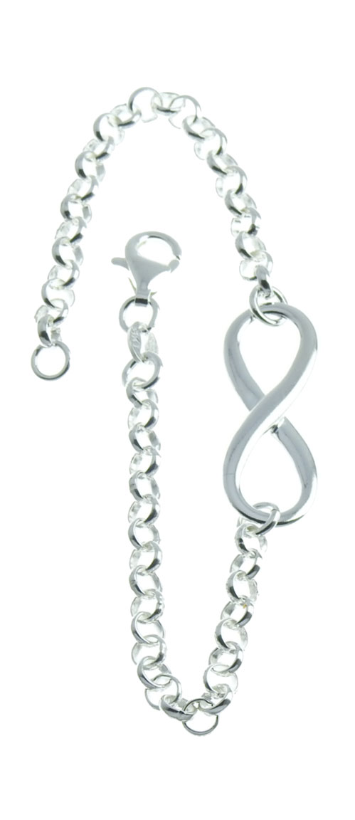Symbolizing continuity, eternity or eternal love, the Infinity bracelet is the perfect gift for someone special. The delicate and beautiful eternity bracelet is 19cm long, but you can attach the clasp to any link on the bean chain if you wish. The bracelet features a delicate 4mm thick bean chain and measures 28x9mm. The bracelet is made from 925 sterling silver.