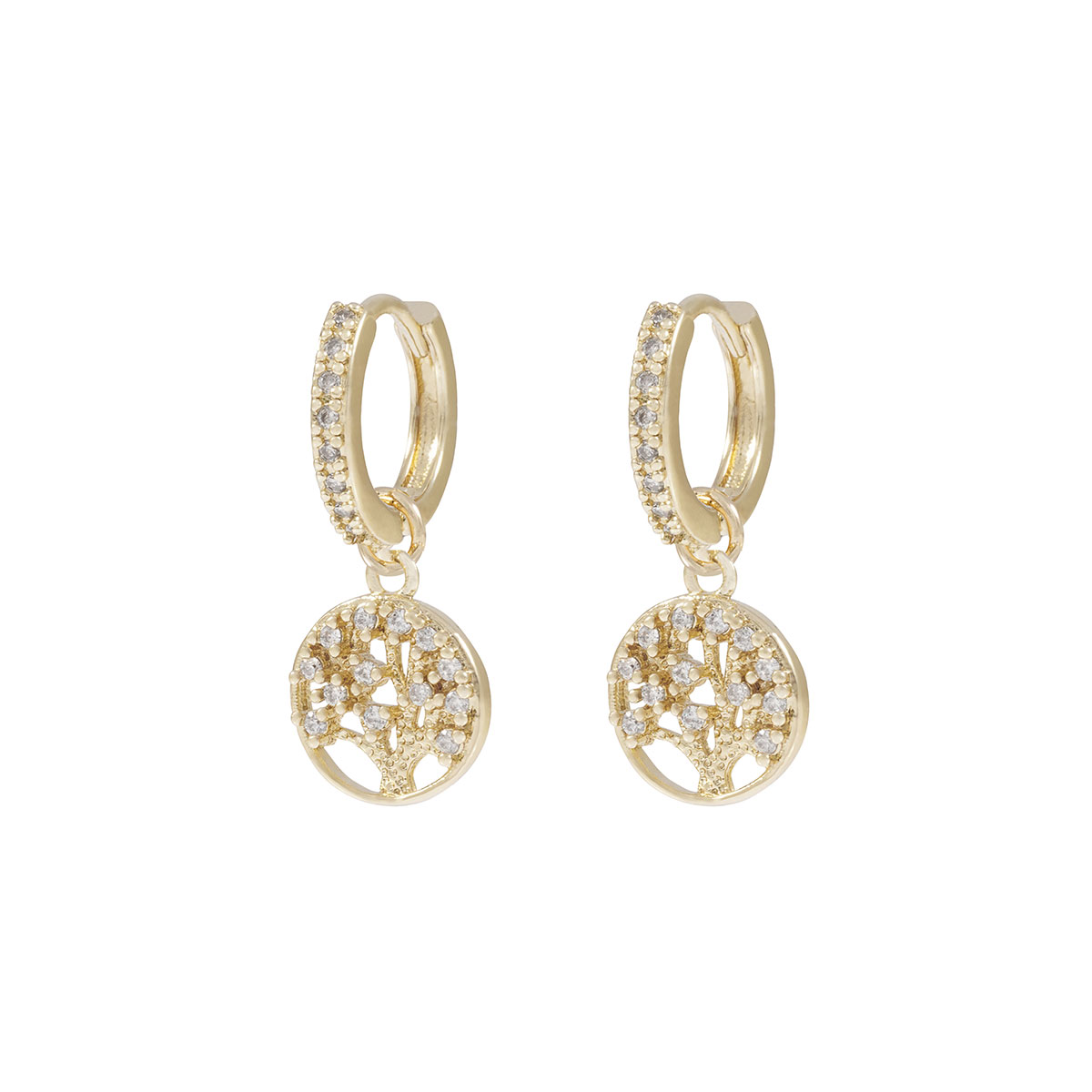 The delicately sparkling Snö of Sweden Cicce Coin earrings add meaning and elegance to your outfit. The material is gold-plated brass and the jewelry is finished with sparkling zirconia stones. The pendants feature a beautiful tree of life motif, symbolizing growth, connection, and strength. The jewelry is perfect for both everyday wear and special occasions.
