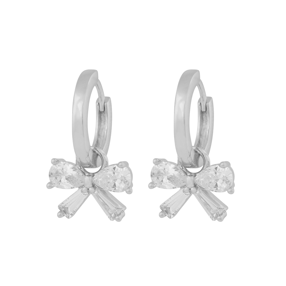 Snö of Sweden Eira 1368-6900012 earrings with dangling zirconia bows, with a sweet and playful design in an elegant style. The silver-plated earrings are made of brass. These striking earrings are suitable for both festive and everyday wear. Length 21 mm and width 8 mm.