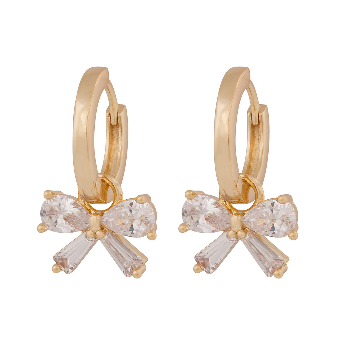 Snö of Sweden Eira 1368-6800362 earrings with dangling zirconia bows, featuring a sweet and playful design with an elegant style. The 14 carat gold-plated earrings are made of brass. These striking earrings are suitable for both festive and everyday wear. Length 21 mm and width 8 mm.