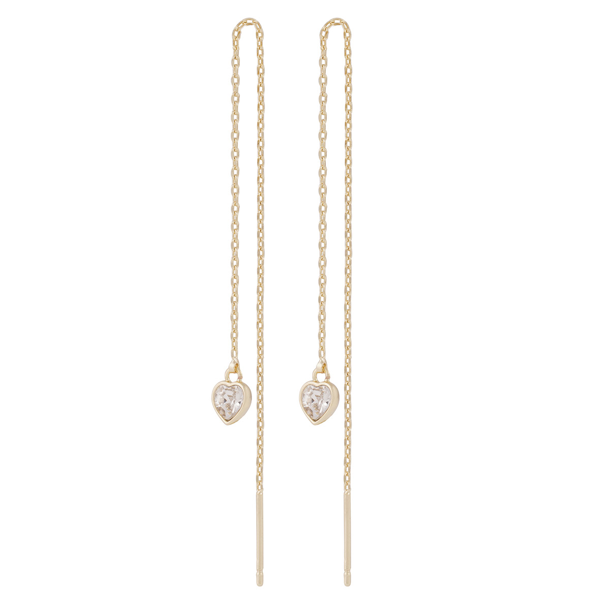 The delicate and lightly moving Snö of Sweden Lovely chain earrings add a touch of romance to your style. A thin chain made of gold-plated brass is threaded through the earlobe, and a clear heart-shaped glass stone is attached to its end. The length of the earring chain is 30 mm, the pendant is 5 mm.