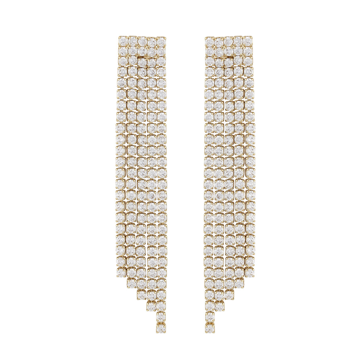 The striking and sparkling Snö of Sweden Siri Big Stone Tassel earrings are the perfect choice when you want to add a touch of glamour to your outfit. The earrings are made of gold-plated brass and decorated with numerous sparkling zirconia stones. The multi-row design adds elegant movement to the earrings, making them real eye-catchers. The jewelry is 65 mm long and 10.5 mm wide.