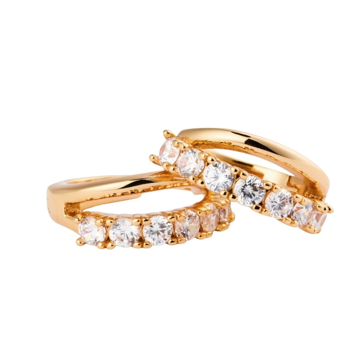 Sparv Journey hoops add a quiet touch of celebration to every day. Gold-plated (18K) brass and a neat row of zirconia along the front edge bring a subtle sparkle, and the hoops work beautifully on their own or layered with other jewellery.