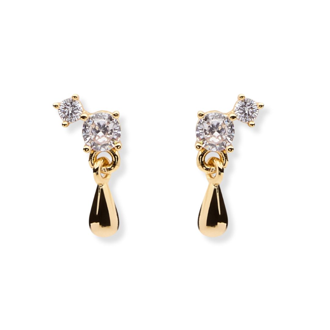Smart and minimalist, the Sparv Sugar Drop gold-plated earrings 1880101 are a delight with their lightweight look. The stud-fastening earrings feature brightly shining zirconia and dangle from a teardrop-shaped ornament that swings beautifully on the earlobe. The playful design adds a fun look to the jewellery. The earrings measure 7 mm and are made of high quality gold plated brass. Sparv jewellery is nickel-free and comes in a Sparv box made of recycled and FSC-labelled paper.