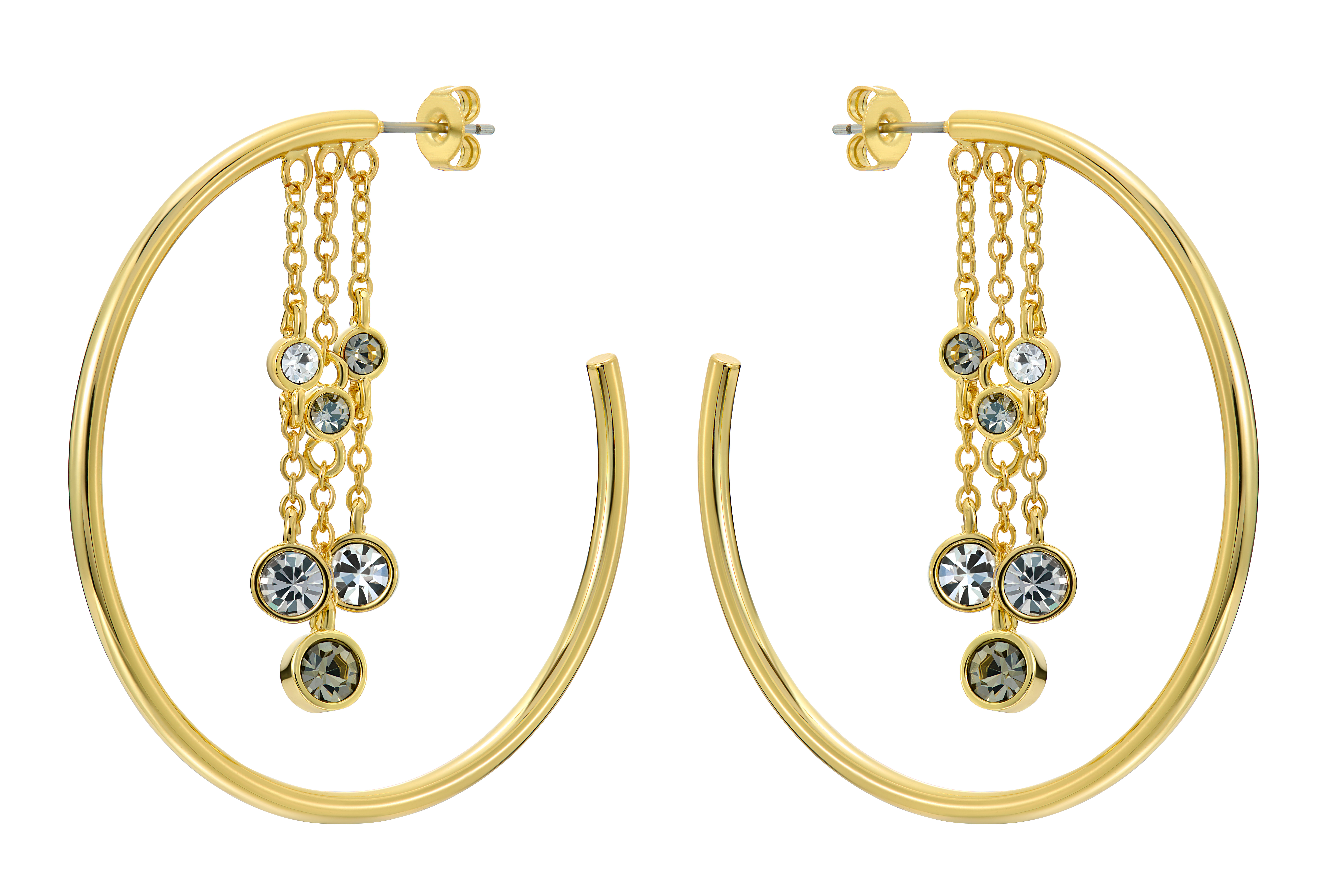 TED BAKER CASSIDY 06-TBJ4111-02-38 are large and elegant earrings with sparkling crystals embedded in the hanging jewelry. Both earrings have three clear and three dark crystals. These elegant gold-plated earrings are especially suitable for parties and stylish spending time. The earrings are made of brass and have a stud fastening. Ted Baker jewelry is delivered in the manufacturer's original box and has a 1-year warranty.