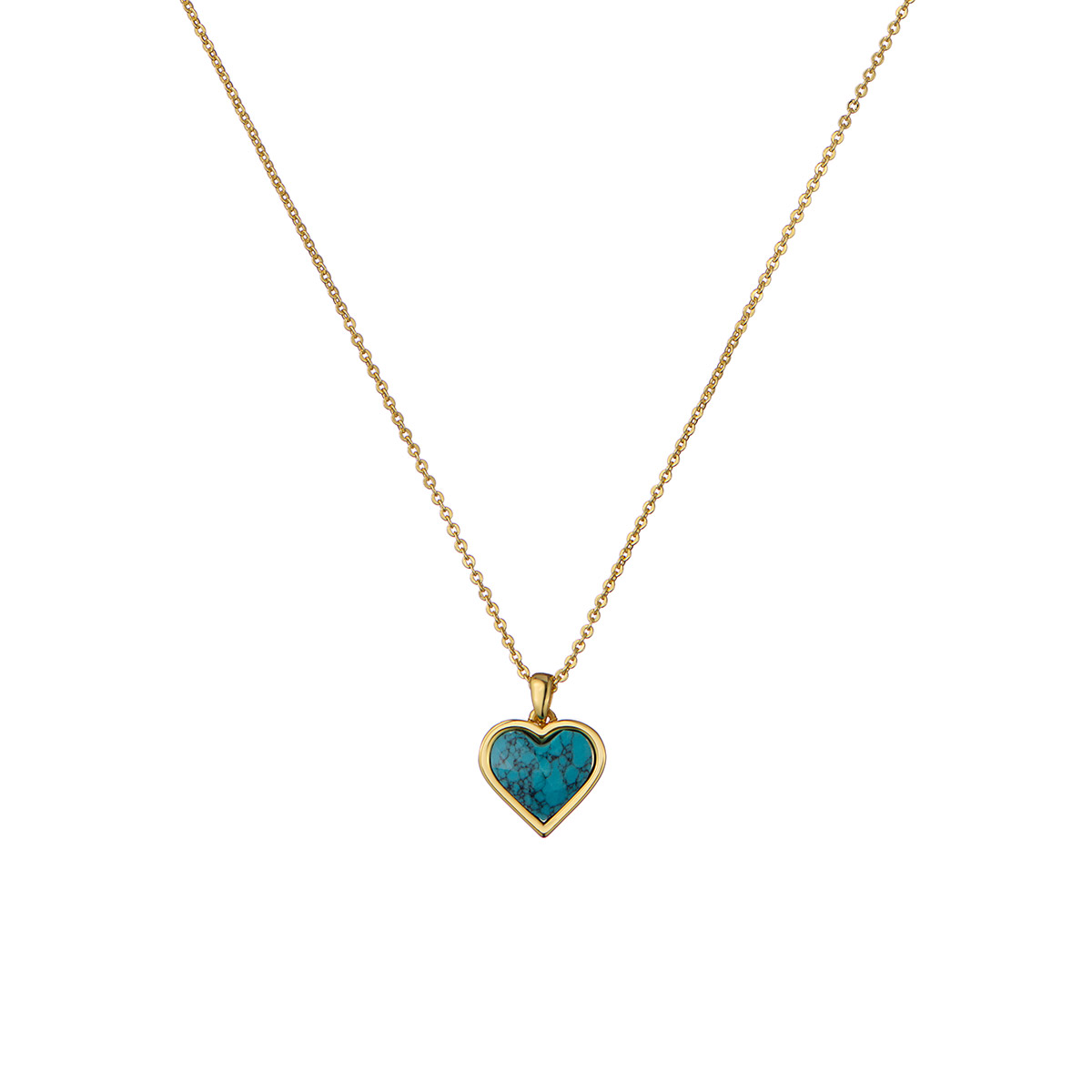 The gold-tone Ted Baker Farida heart necklace TBJ3966-02-32 is a classic, with a synthetic turquoise finish. The necklace is made of brass. Ted Baker jewelry comes in the original manufacturer's box and is guaranteed for 1 year.