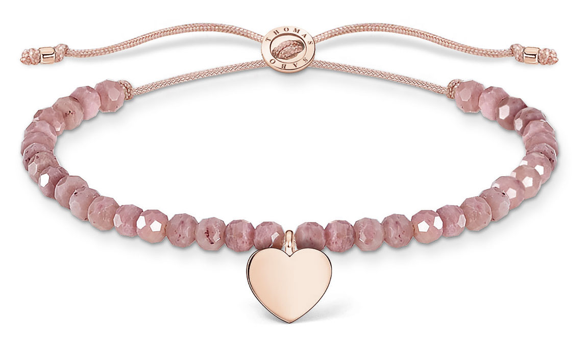Thomas Sabo bracelet A1985-893-9-L20V is a textile string bracelet with a length that you can easily adjust to your liking (length 13 - 20 cm). The bracelet features stunning dark pink pearls and a red 18 karat gold plated heart as a pendant. The textile part is pink. The bracelet comes in the original manufacturer's packaging.