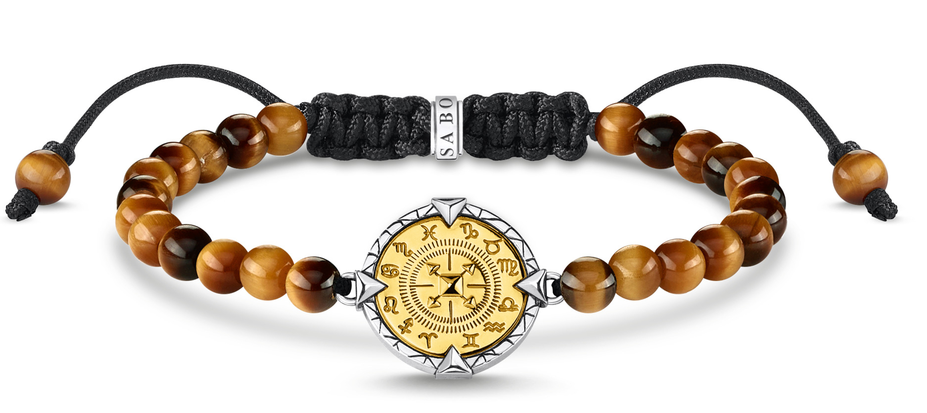 Thomas Sabo elements of nature tigers eye gold A2009-966-2-L22v is adorned with tiger's eye pearls for a multicolored look and an 18-karat gold bead decorated with symbols of earth, water, air and fire. The belt is adjustable from 15 to 22 cm in length. Thomas Sabo jewellery is delivered in the original manufacturer's box.