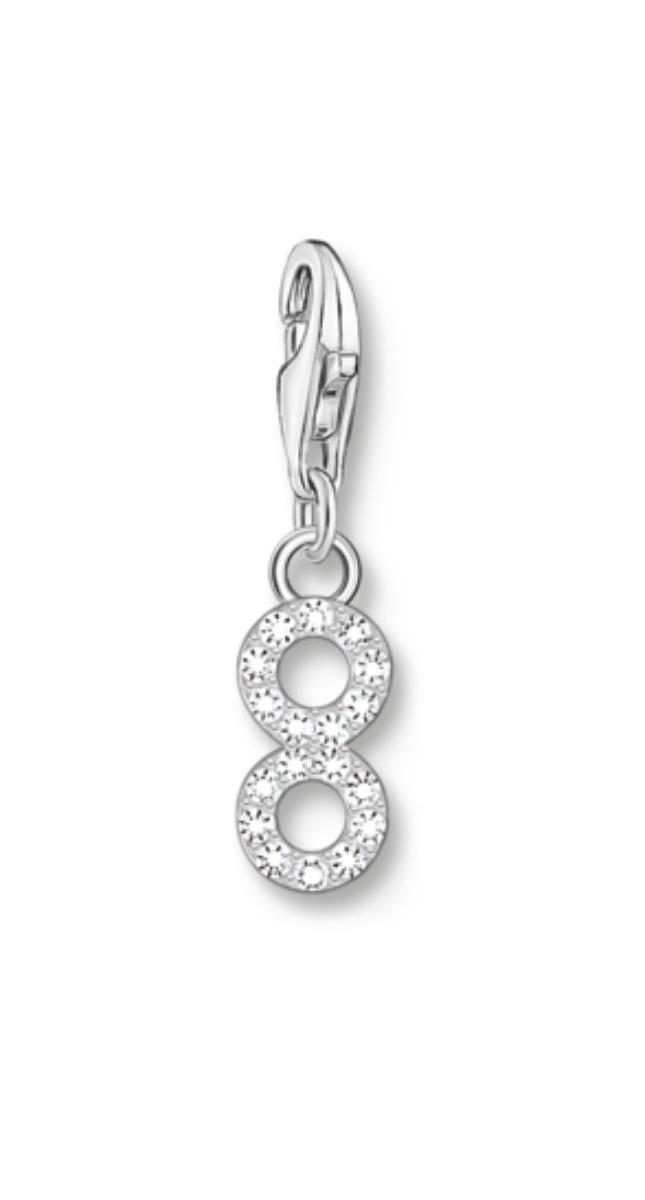 Carry your favourite numbers in the form of jewellery. Thomas Sabo Charm Club Charm 8 charm 2132-051-21 is decorated with the number 8 and is made of sterling silver. The jewellery measures 23 mm.