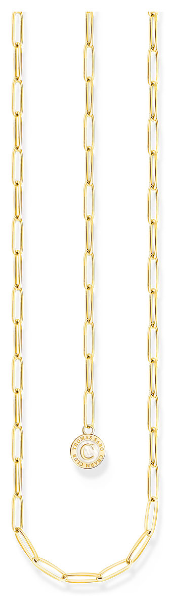 The Thomas Sabo Charm Club Charmista gold boyfriend paperclip chain necklace X2089-427-39 is beautiful on its own or you can use it to create a piece of jewellery just for you. You can choose the charms to go with your necklace to remind you of things that are important to you, or wear it as it is. The charm is attached to the necklace with a parrot clasp on the charm. The boyfriend chain necklace is made of 18-karat gold-plated sterling silver and is 2.5 mm thick. The charms are sold separately.