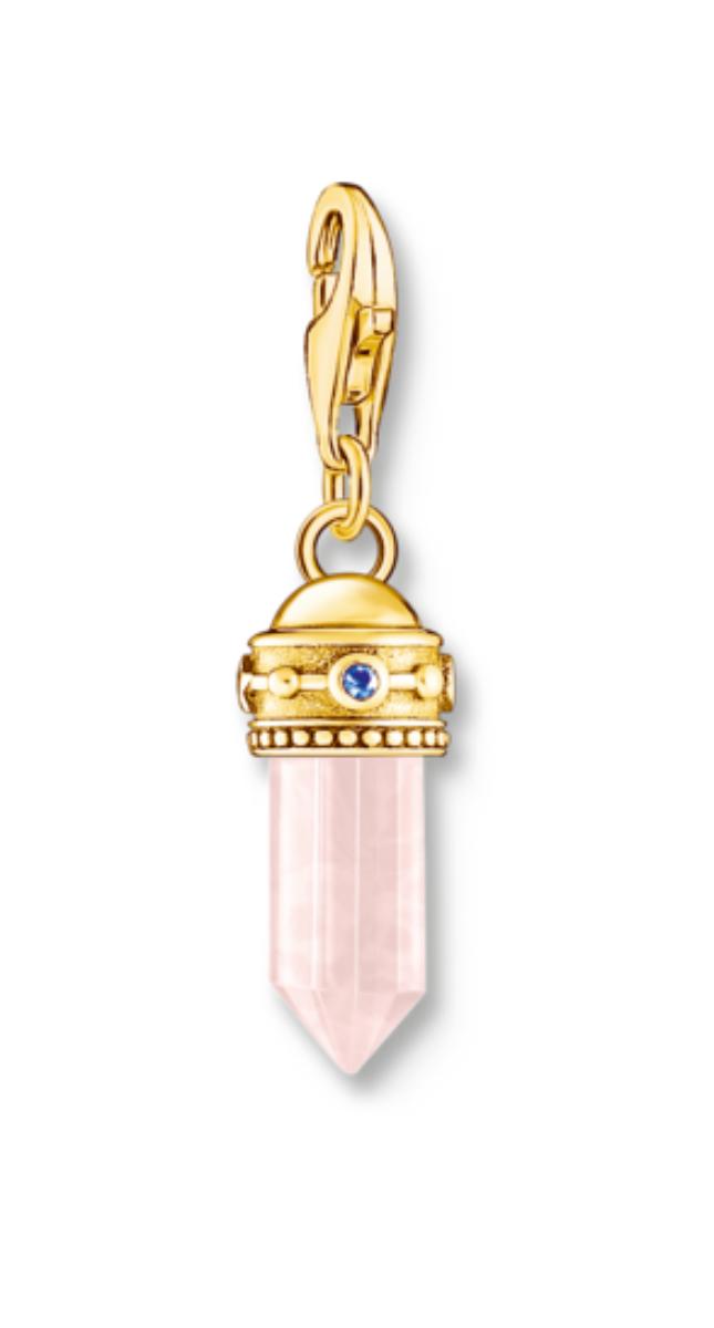 Thomas Sabo Charm Club Charm Hexagon Rose Quartz charm 2165-995-9 is adorned with rose quartz. This stone has many symbolic meanings, and brings the wearer, among other things, love. It measures 29 mm and is made of sterling silver.