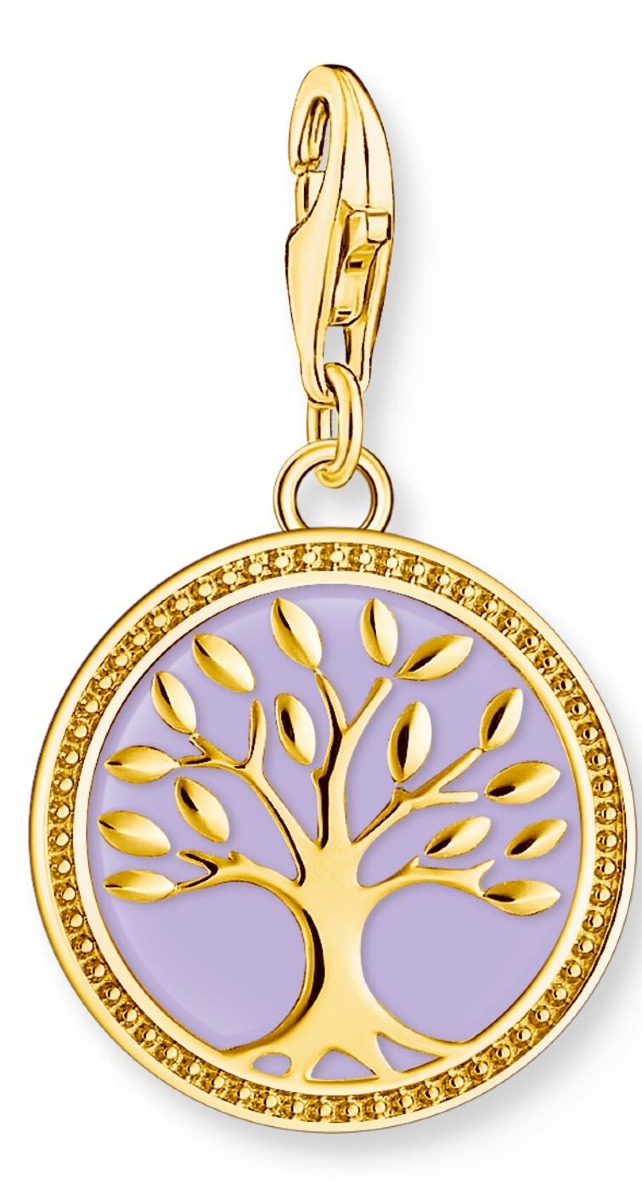Thomas Sabo Charm Club Charm Tree of Love with violet enamel yellow-gold plated charm 2035-427-13 is made of 18-karat gold-plated sterling silver. The Tree of Life pendant is decorated with a violet enamel. The pendant measures 30 x 17 mm.