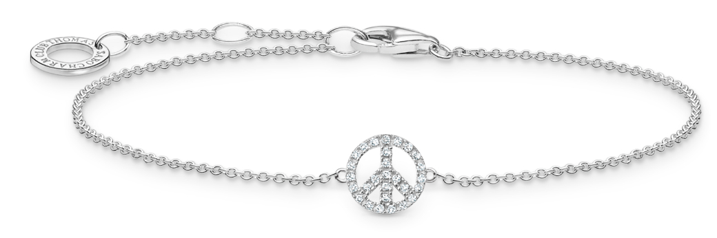 Thomas Sabo Charm Club Charming Peace is a new jewellery collection with the symbol of peace at its heart. Thomas Sabo Charming Peace with white stones silver bracelet A2083-051-14-L19V is decorated with synthetic zirconia. The pendant measures 0.7 x 10 mm. Thomas Sabo jewellery is delivered in the original manufacturer's box.