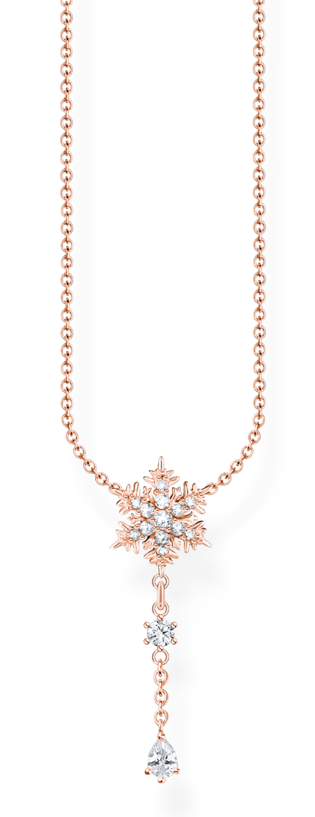 The Thomas Sabo Charm Club Charming Polar World glows with the magic of winter and features all shades of white, silver and blue. Immerse yourself in the wonderful winter world with the Thomas Sabo Charming Polar World necklace KE2171-416-14-L45V. The necklace features several brilliant-cut synthetic zirconia and the pendant resembles a snowflake. Pendant size 26x8mm, chain length adjustable between 40-45 cm. The look is finished with 18-karat rose gold. The Thomas Sabo jewellery comes in the original manufacturer's box.