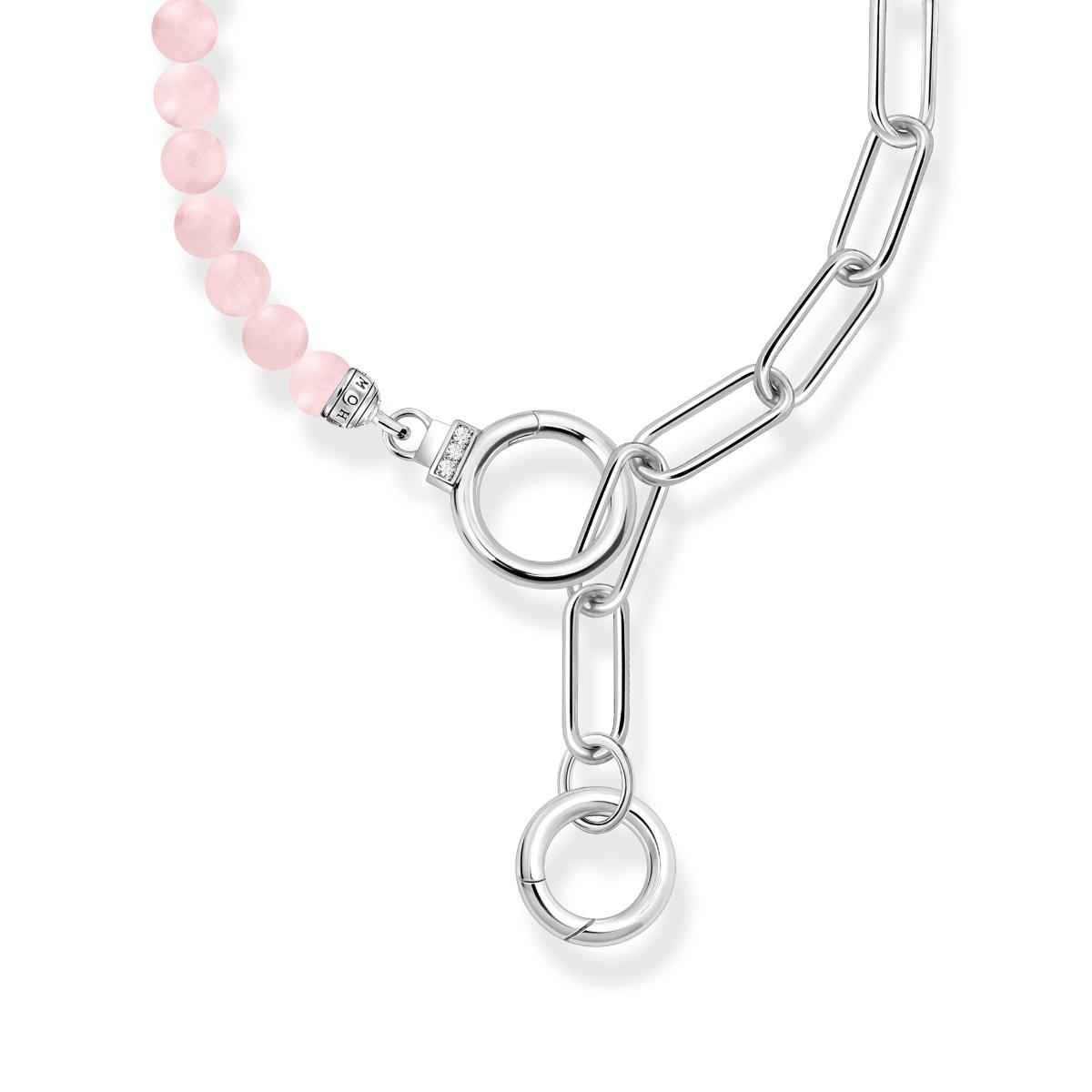 Thomas Sabo Glam & Soul Cosmic Amulet rose quartz silver necklace KE2193-035-9-L47v features rose quartz charms and a striking paperlink chain. You can adjust the length of the necklace to several different lengths, and finish it off with a Thomas Sabo pendant that's just right for you. The pendants are sold separately. The necklace measures 42.00 - 47.00 cm in length and is made of sterling silver. The Thomas Sabo jewellery comes in the original manufacturer's box.