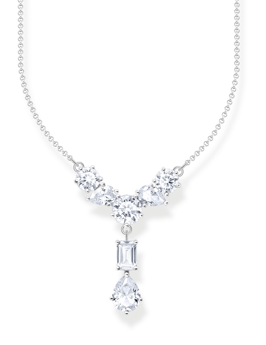 The Thomas Sabo Heritage Glam with seven zirconia y-shape necklace KE2195-051-14-L45v is a striking y-shaped necklace adorned with several bright, synthetic zirconia. The pendant measures 31 mm in height and 26 mm in width, with an adjustable chain length of 40-45 cm. The necklace with the brightest stones is perfect for formal occasions. Thomas Sabo jewellery is delivered in the manufacturer's original box.