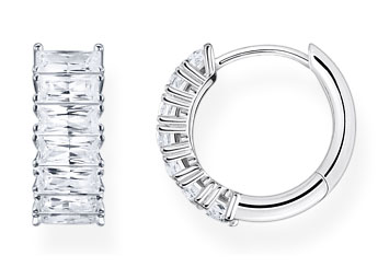 Thomas Sabo white stones pavé silver CR667-051-14 earrings are the perfect choice for any occasion. The surface of the ring is adorned with baquette-cut cubic zirconia, and the diameter of the ring is 1.7 cm. The frame is sterling silver. The Thomas Sabo jewellery comes in the original manufacturer's box.