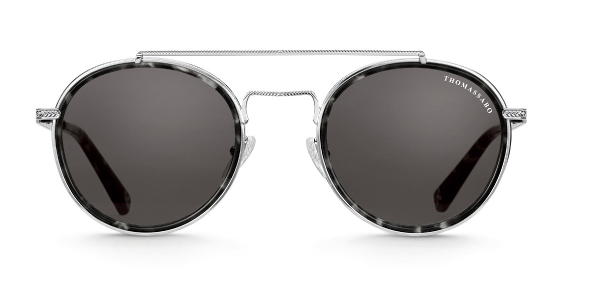 The Thomas Sabo Johnny panto ethnic Havana black E0006-052-106-A round double bridge sunglasses feature classic and timeless turtle frames and a graphic pattern on the silver-coloured frame. The lightweight frames are made of acetate and metal, and the plastic part of the Temple folds well behind the ear to keep the glasses in place. The rim has a shield to prevent reflection. Thomas Sabo Johnny Panto ethnic Havana black sunglasses come in a leather case with a cleaning cloth.