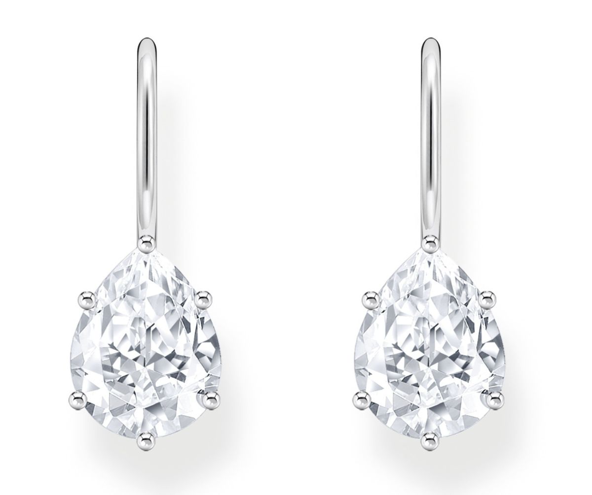 Thomas Sabo large white zirconia silver earrings H2290-051-14 feature a large clear zirconia stone. The earrings are made from recycled sterling silver and are comfortable to wear thanks to the lightweight hooks. Size: 7 x 18 mm. Thomas Sabo earrings are delivered to your home in a manufacturer's box.