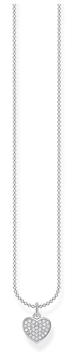 The Thomas Sabo KE2046-051-14-L38V necklace features a heart pendant set with clear synthetic zirconia. The pendant comes with a 38 or 45 cm long chain, choose the right size for you. It is made of high quality sterling silver. Thomas Sabo jewellery is delivered in the original manufacturer's box.
