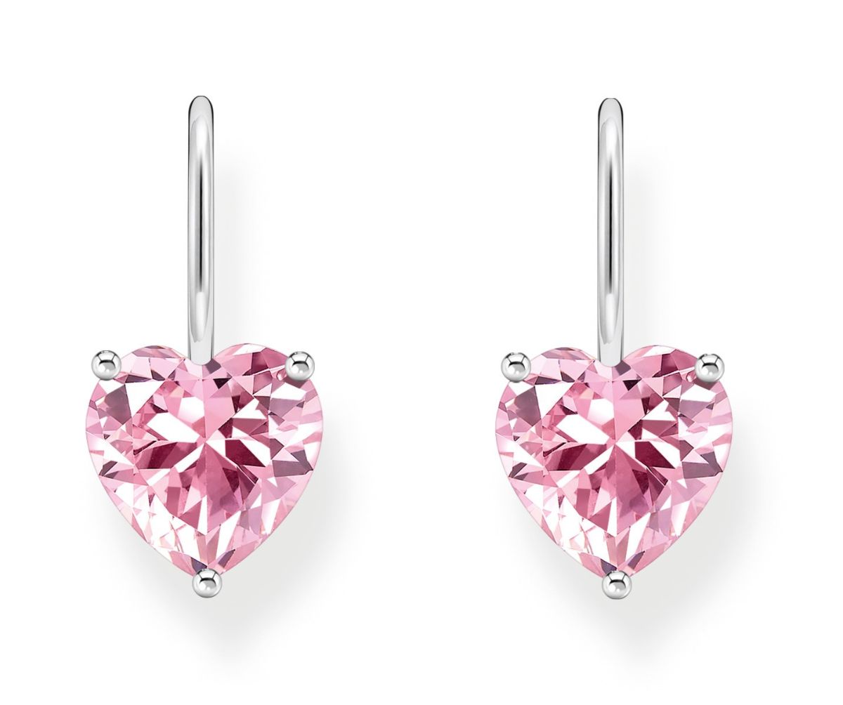 Thomas Sabo pink large zirconia heart heart earrings H2288-051-9 offer romantic sparkle. The heart earrings feature a large heart-shaped pink zirconia, and