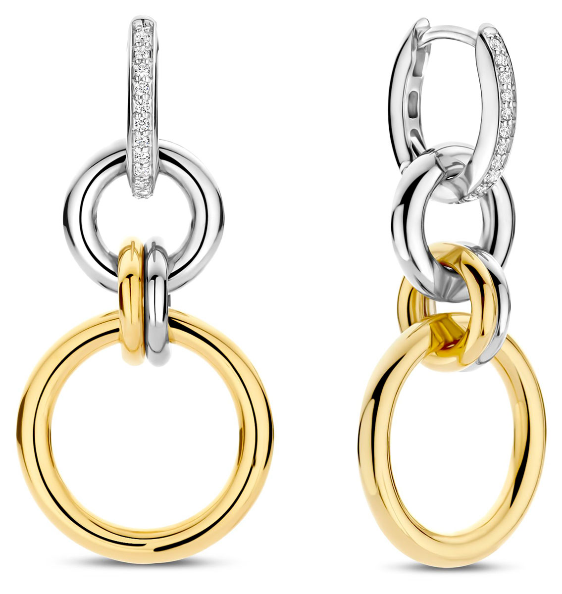 TI SENTO 7989DB gold-plated earrings are a bold interpretation of modern elegance, including timeless sophistication. The earrings, covered in yellow gold and made of high-quality 925 sterling silver, have pavé-implanted clear zircons in the top ring, which give the earrings an extra sparkle. Nickel-free and hypoallergenic, these earrings ensure luxurious comfort with every wear. The length of the earrings is 32 mm, the diameter of the rings is 15 mm and the width is 2 m.