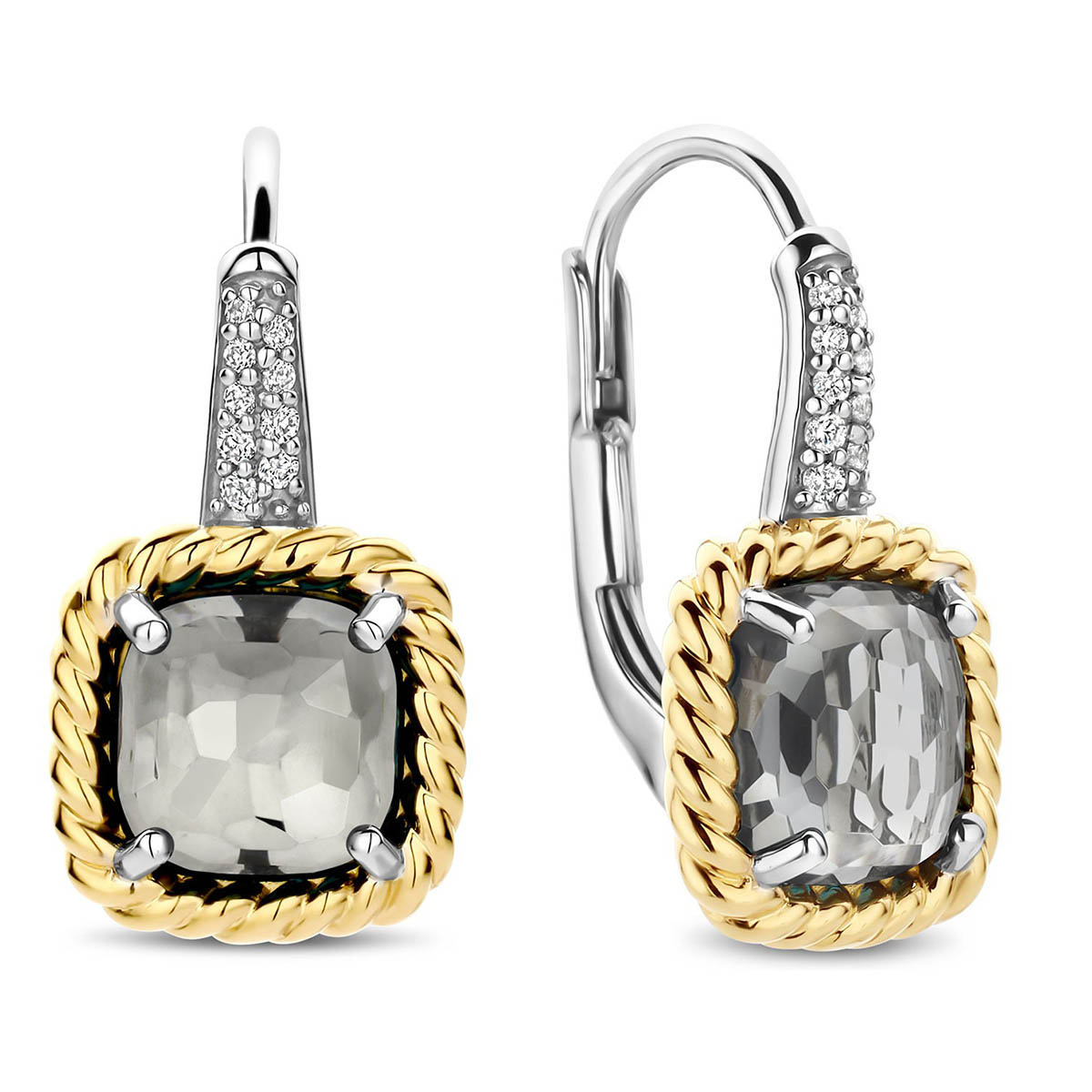 TI SENTO 78042GG are earrings made of high-quality 925 sterling silver with a striking gray crystal set in a yellow gold frame. The earrings have hooks decorated with sparkling zirconia, providing a secure hold. The earrings are nickel-free and hypoallergenic, meaning they are skin-friendly. The earrings are 20 mm long, 10 mm wide and the stone size is 11.5 mm.