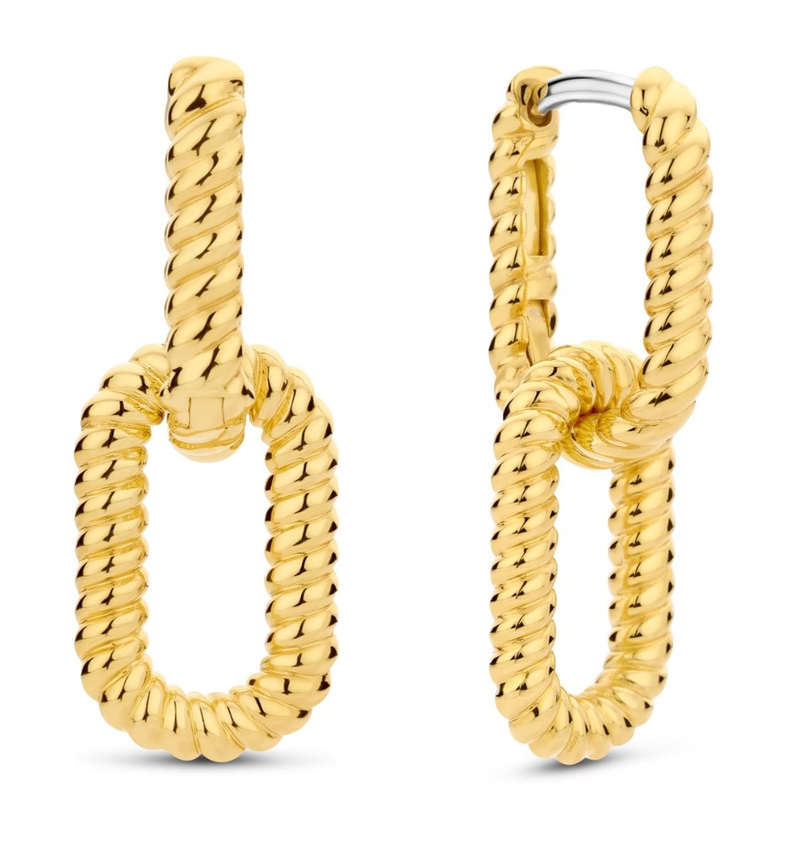 TI SENTO gold-plated carabiner earrings 7963SY are a striking addition to your outfit. These statement earrings are finished in genuine yellow gold, and the detachable pendant allows you to wear the earrings in a variety of ways as a day to night earings. The carabiner earrings measure 14mm x 23.5mm. TI SENTO earrings are made of sterling silver, and are delivered to your home in the manufacturer's beautiful jewellery box. TI SENTO jewellery has a 2 year guarantee against material and manufacturing defects.