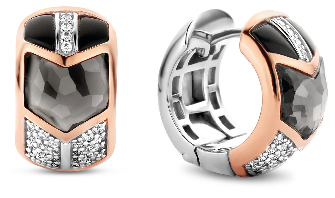 TI SENTO - Milano 7828GB huggie earrings are made of sterling silver, partially plated in rose gold. The earrings are decorated with black and grey onyx and sparkling cubic zirconia. The earrings are 16 mm in diameter and 10 mm wide. The TI SENTO jewellery has a 2 year guarantee against material and manufacturing defects, and is delivered to your home in the manufacturer's beautiful jewellery box.