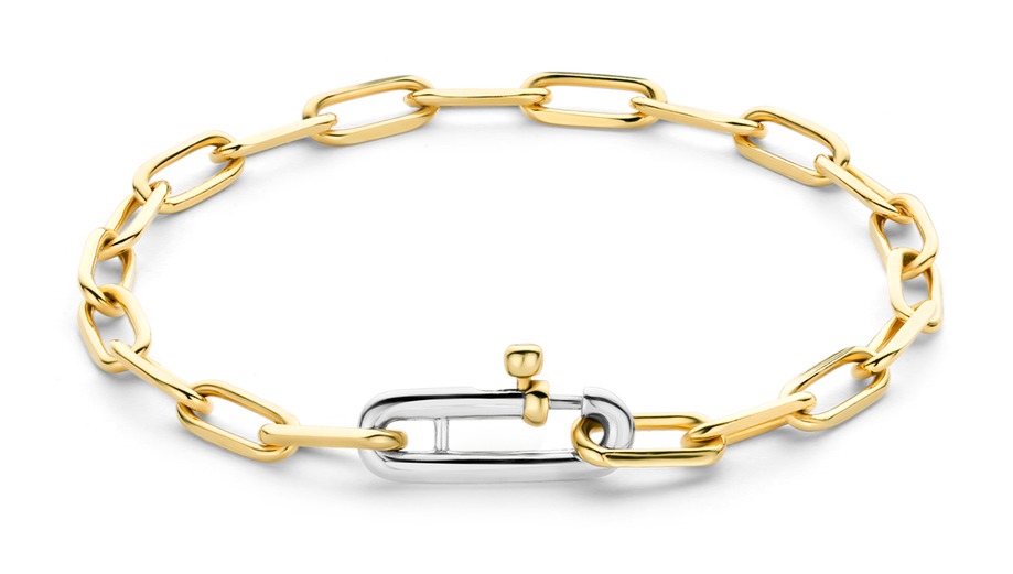 Single thick chains are a trendy accessory choice that look stylish on their own or combined with other chains to create a layered look. TI SENTO gold-plated silver bracelet 23018SY/M is made of large, rectangular links with 18-karat gold plating. The clasp is made of rhodium-plated sterling silver. The chain is 18 cm long and 4.5 mm thick. TI SENTO jewellery has a 2 year guarantee against material and manufacturing defects, and is delivered to your home in the manufacturer's beautiful jewellery box.