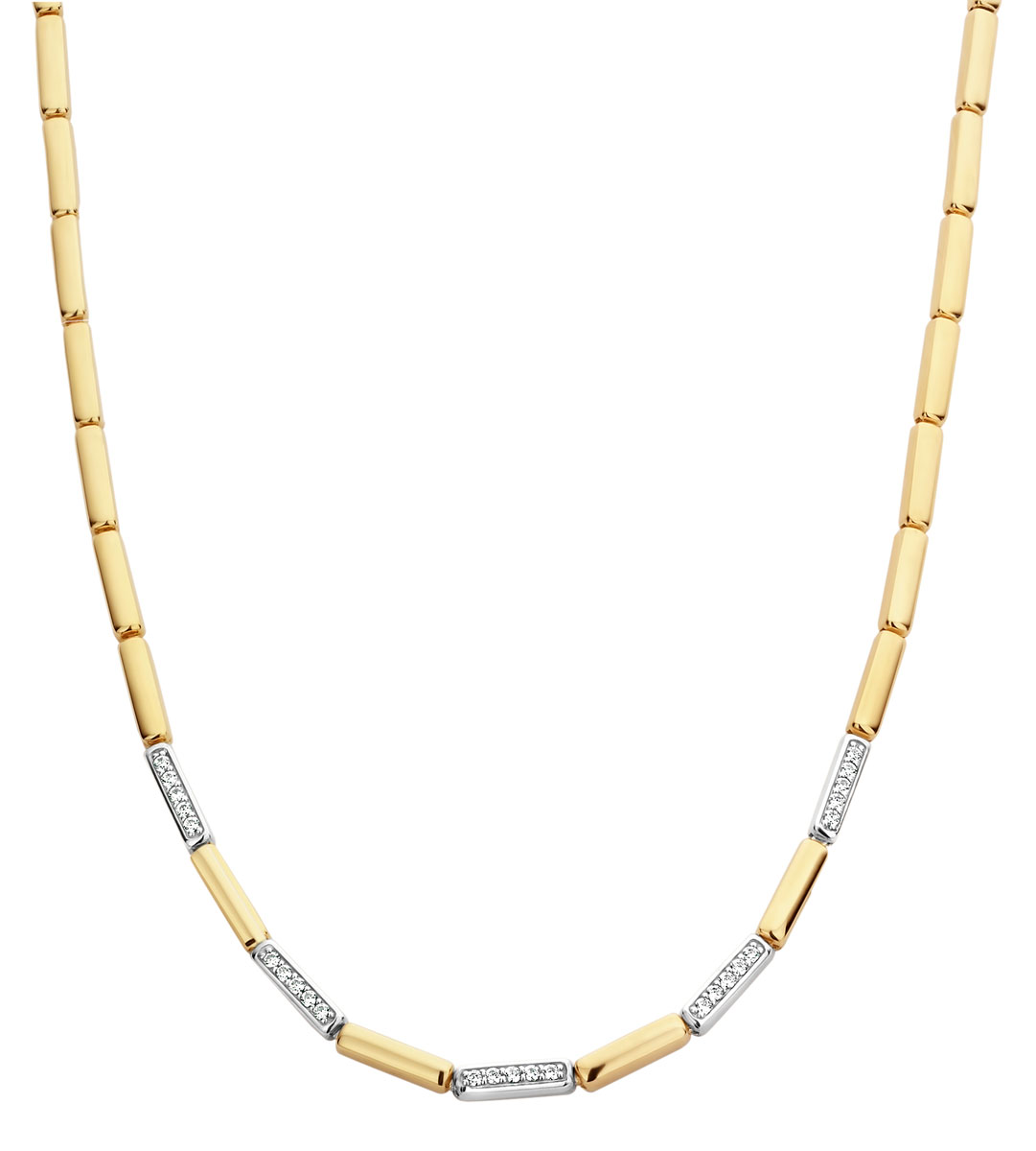 TI SENTO 3997ZY necklace is made of sterling silver and is partially plated with 18 karat yellow gold. The length of the necklace is 43 cm. Some of the pieces of the necklace are decorated with sparkling synthetic zirconia. TI SENTO jewellery has a 2 year guarantee against material and manufacturing defects, and is delivered to your home in the manufacturer's beautiful jewellery box.