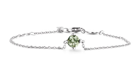 An elegant TI SENTO Round Solitaire 2912GG bracelet with a green crystal in four prong set. Crafted in sterling silver. TI SENTO jewellery has a 2 year guarantee against material and manufacturing defects, and is delivered to your home in the manufacturer's beautiful jewellery box.