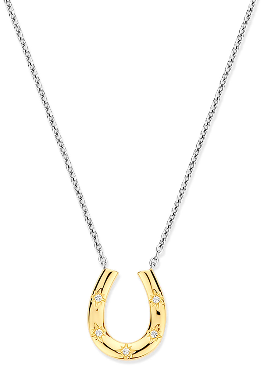 With the TI SENTO 34084ZY horseshoe necklace, you channel luck; beautifully crafted necklace made of premium 925 sterling silver is designed to bring both charm and elegance. Encrusted with rich yellow gold, this necklace features a delicate horseshoe pendant embellished with sparkling cubic zirconias that create a subtle yet captivating shine. Carefully crafted for sensitive skin, the necklace is nickel-free and hypoallergenic for long-lasting comfort and durability. The length of the necklace is 38 – 48 cm. The width of the jewelry at the top is 14 mm and the width at the bottom is 16 mm.