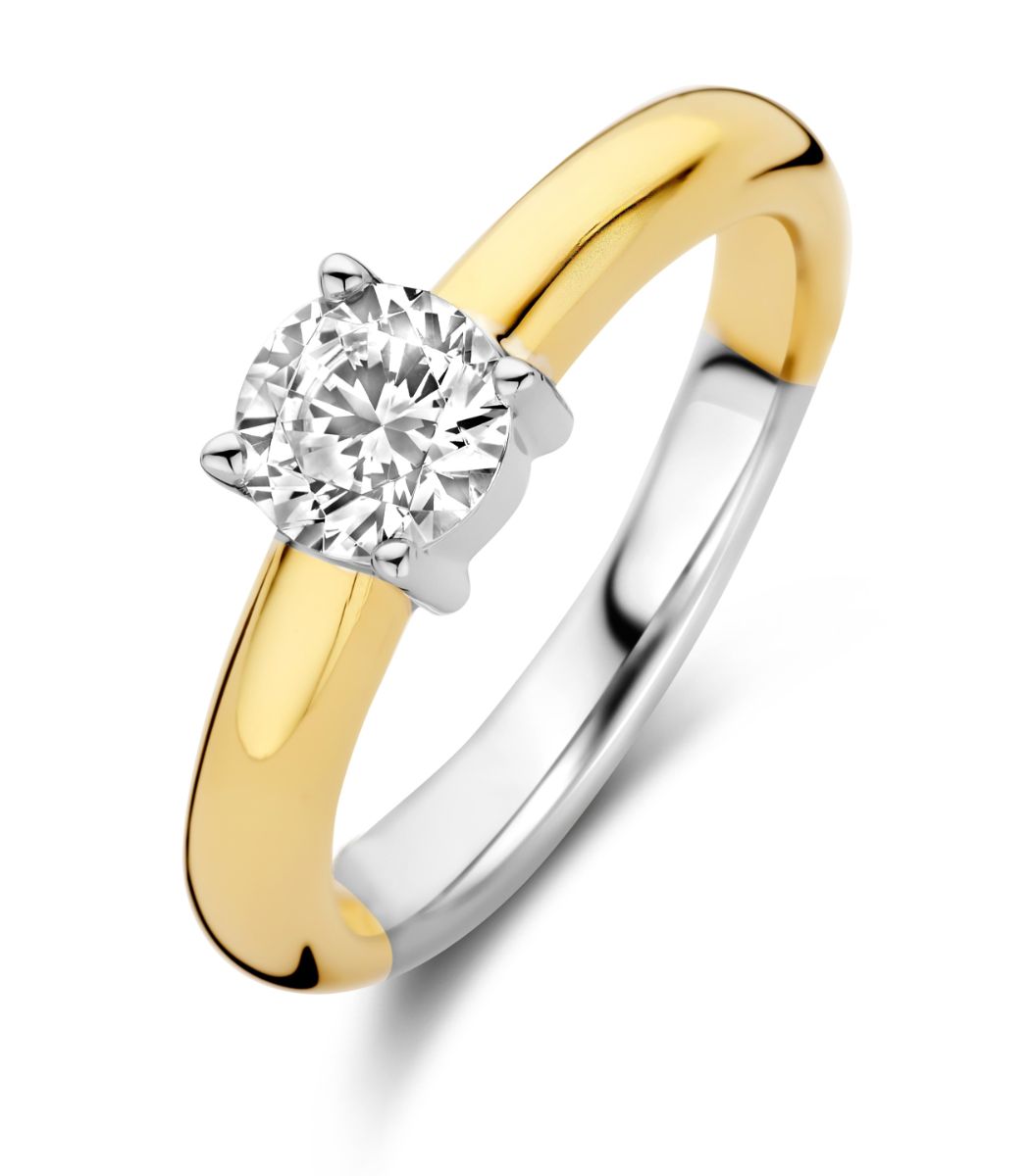 TI SENTO two-tone solitaire silver ring 1463ZY is finished with a brilliant-cut zirconia. The stone is set with four claws, and the shank is two-tone. The platinum plating finishes the whole, keeping the silver shiny for a long time. TI SENTO jewellery has a 2 year guarantee against material and manufacturing defects, and is delivered to your home in the manufacturer's beautiful jewellery box.