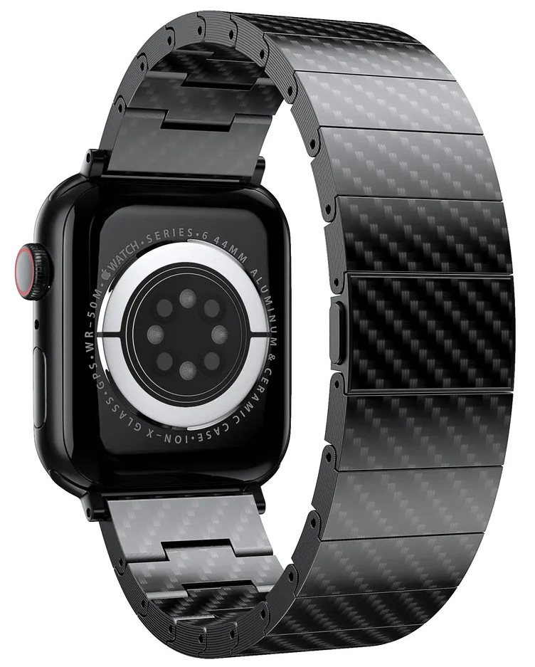 Tiera Apple Watch carbon fiber strap black 38/40/41 is attached with a push button clasp and can be shortened by removing links. (NOTE! The package does not include a strap tool. Strap tool sold separately). Give your Apple Watch a new look with an eye-catching carbon fiber strap. NOTE! This is an accessory strap and not made by Apple!