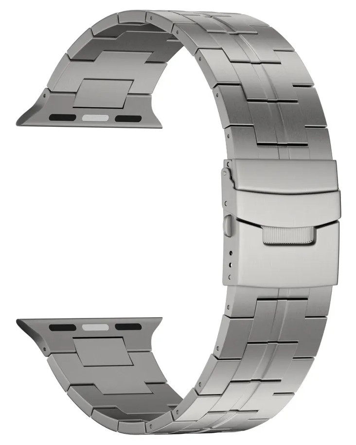 Tiera Apple Watch titanium strap silver 42/44/45 mm is attached with a titanium fold-over clasp and can be shortened by removing links. (NOTE! The package does not include a strap tool. Strap tool sold separately). Give your Apple Watch a new look with an eye-catching titanium strap. NOTE! This is an accessory strap and not made by Apple!