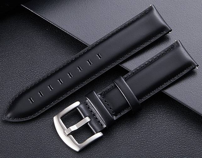 Tiera Classic leather watch strap black is a classic leather watch strap made of leather. The colour of the watch strap is black and the buckle is silver. The watch strap is attached to the watch by means of quick spring pins, making it easy to attach and detach the watch strap. The watch strap is available in 18 mm, 20 mm and 22 mm widths.