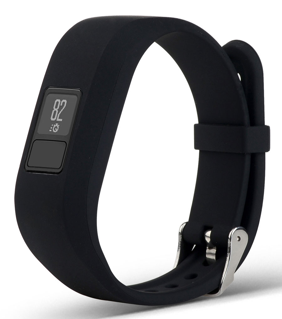 Tiera Garmin Vivofit 3 wrist strap black fits Garmin Vivofit 3 smart watches. The watch strap is made of silicone and the buckle is stainless steel. The watch strap is also very lightweight and easy to clean. The watch strap comes with a 1-year warranty. The warranty covers defects in materials and workmanship. This watch strap is not manufactured by Garmin, it is an accessory watch strap.