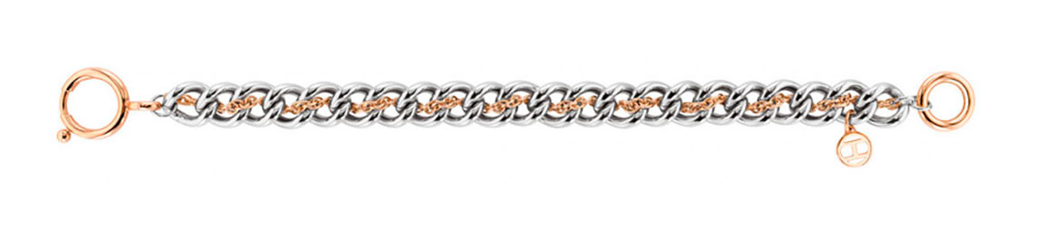 Tommy Hilfiger Double Link 2780469 is a unique silver and red gold bracelet made of stainless steel with a stylish bean chain and a smaller red gold chain. At the end of the chain is the Tommy Hilfiger logo. The Tommy Hilfiger jewellery comes in the original manufacturer's packaging.